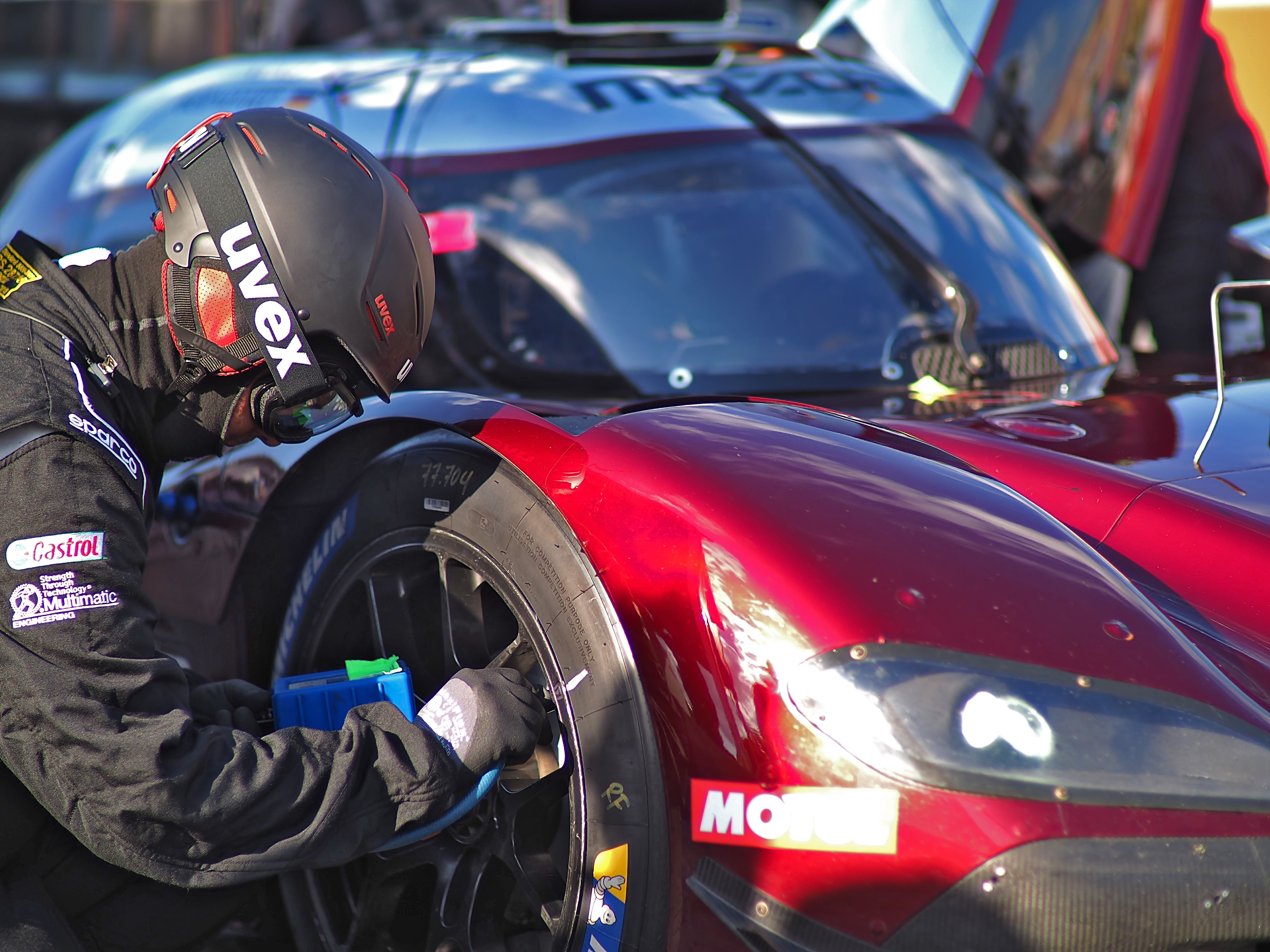 Pit crew adjusting front tire pressure. July 2, 2019 Return to: Six Hours of the GlenFull resolution (5184 × 3888) Image navigation Previous Image Next Image Pit crew adjusting front tire pressure. Likely responding to driver feedback, adjusting front tire pressure will vary the over/understeer dynamics of the car.