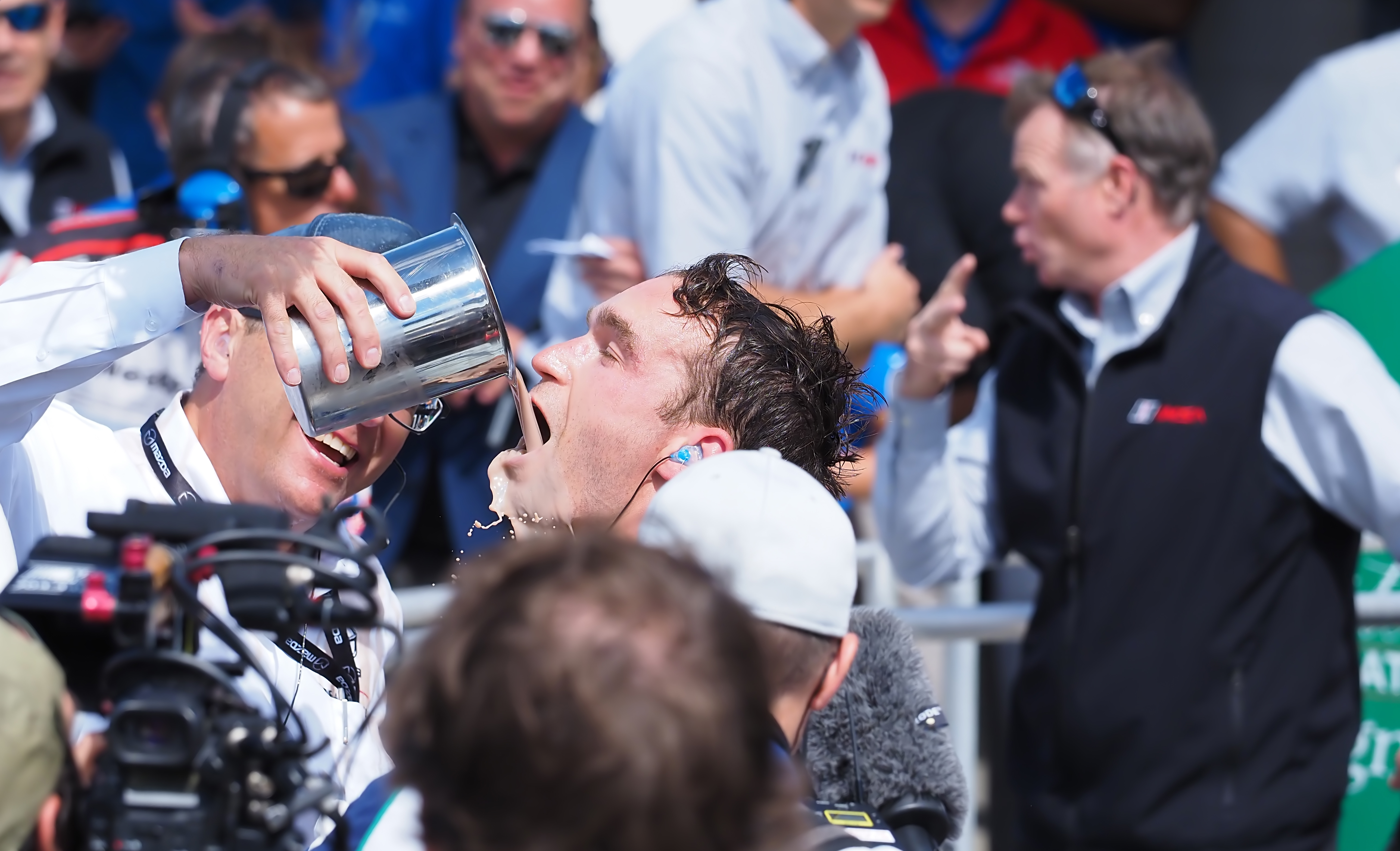 Victory …. Chocolate Milk? July 2, 2019 Return to: Six Hours of the GlenFull resolution (5151 × 3132) Image navigation Previous Image Next Image Victory .... Chocolate Milk? John Doonan shares his victory drink of chocolate milk with Harry Tincknell. It was a ritual drink that Doonan shared with his father when they raced at the track.