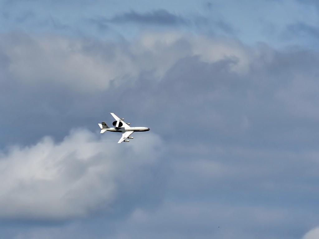 There was only one propeller aircraft, the venerable C-130 Hercules. On a sunny day, a ND filter is a must in order to drop shutter speeds to under 1/100s without experiencing diffraction limited resolution at small apertures. This allows the capture of a full propeller rotation.