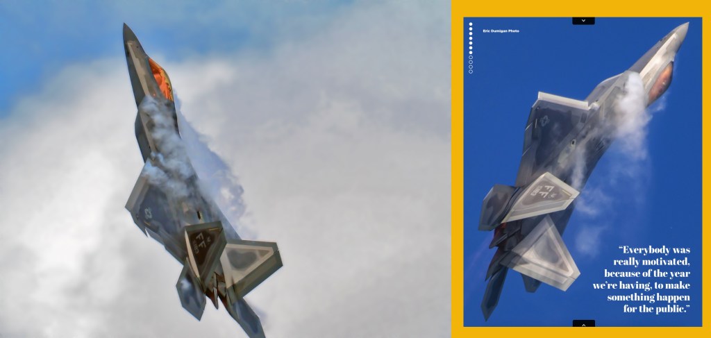 I saw a lot of people using their phone cameras or an iPad to try and shoot the aircraft. I doubt they were particularly successful, especially when it comes to fighter jets. Don’t be afraid to unleash 600mm of focal length courtesy of MC20 & 300mm f/4 prime because those planes can get very small, very fast.