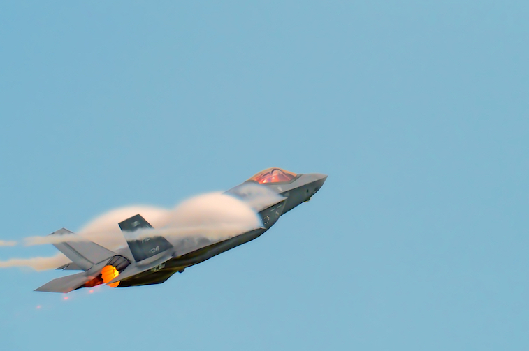 There was only one propeller aircraft, the venerable C-130 Hercules. On a sunny day, a ND filter is a must in order to drop shutter speeds to under 1/100s without experiencing diffraction limited resolution at small apertures. This allows the capture of a full propeller rotation.
