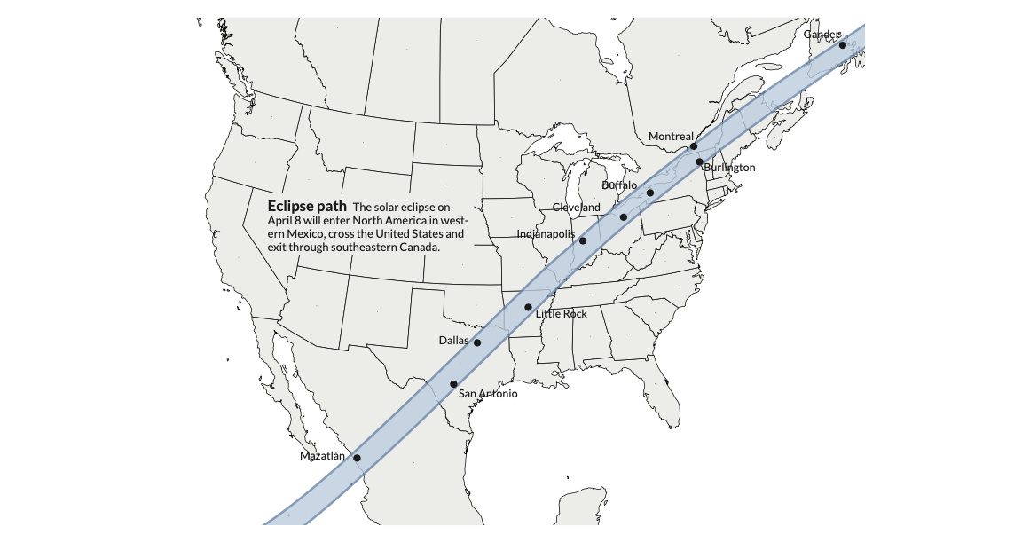 In case you haven`t heard, there is a complete solar eclipse happening on April 8th and it can be seen in many of the most populated regions across North America, from Mazatlán in Mexico to St. John’s in Newfoundland. If you have never experienced witnessing this phenomenon, it is often on people`s bucket list and is certainly worth seeing if you happen to live in close proximity to its path of totality (and can also get that Monday off work!).