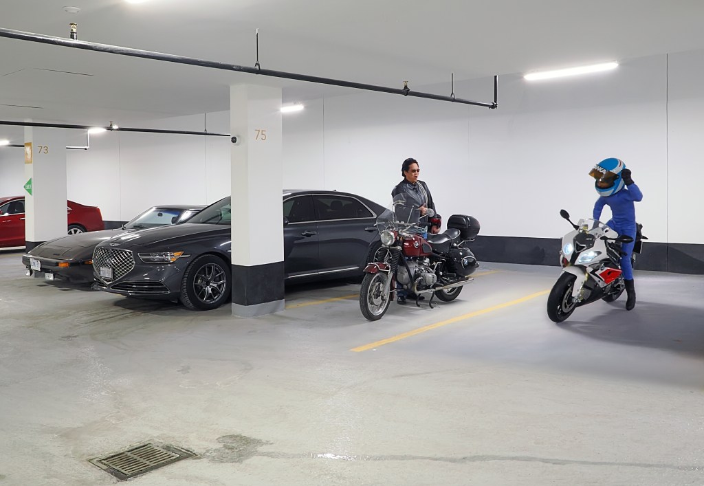 My underground parking garage is given a biannual cleaning so we all have to move out for the day. I’d normally push my old 1968 BMW R60US motorcycle to the bicycle racks but this morning I decided to start it and ride if over there instead. It hasn’t been ridden for over two years and for a modern bike one would likely need to drain the tank, put in fresh gas as well as charge up the battery.